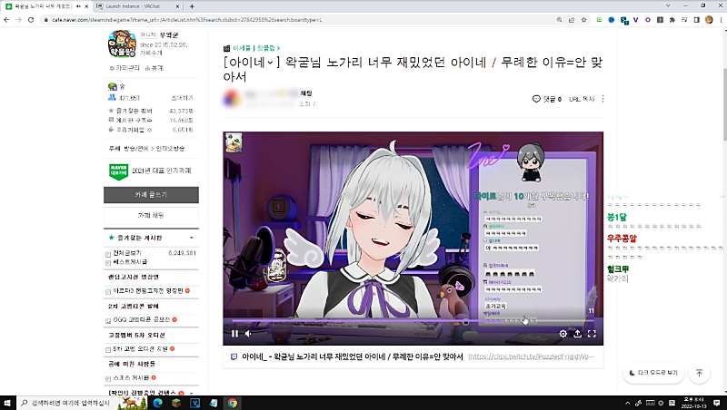 0:42:00 주간왁물원 10월 둘째주 (캘칼 인터뷰)