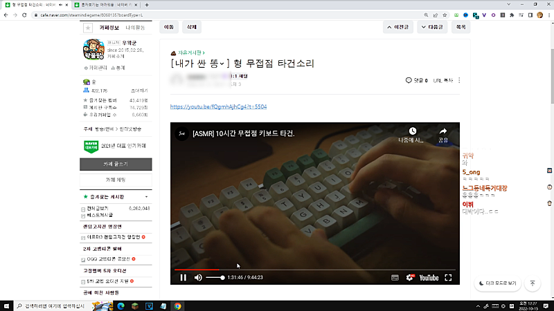 (체리 적축 키보드 타건소리)