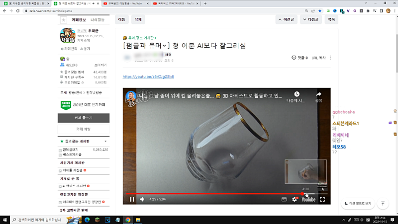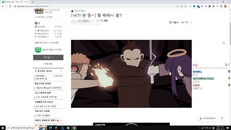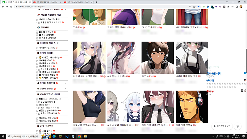 야 AI 팬아트 게시판이 더 재밌는데 어떡하지 ㅋㅋㅋ