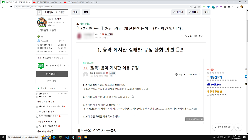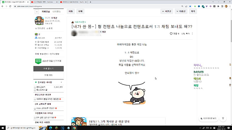 왁물원 게시판 신설