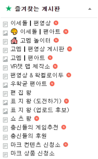 왁물원 즐겨찾기 게시판 설정