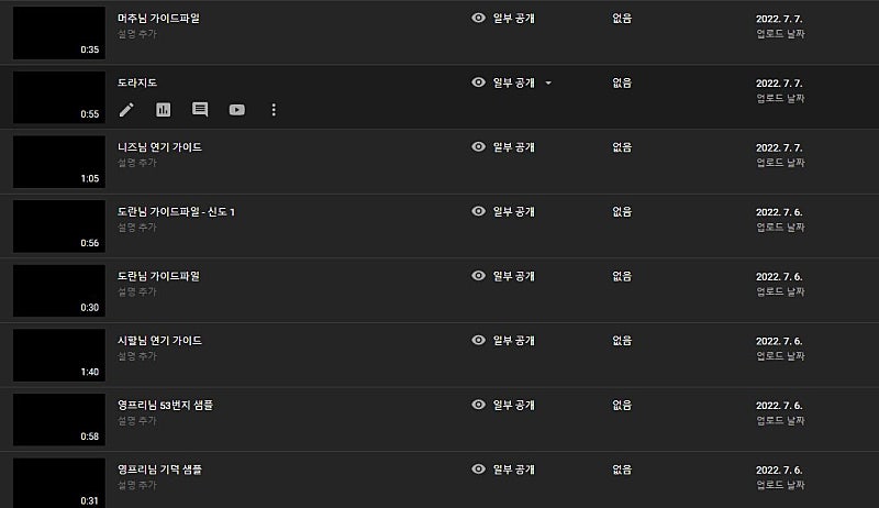 간단한 가이드 영상과 톤 잡기만 어느 정도 진행 했습니다.