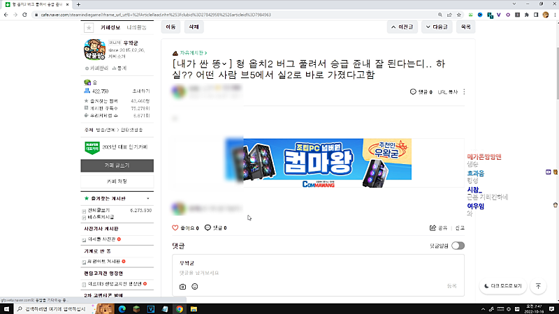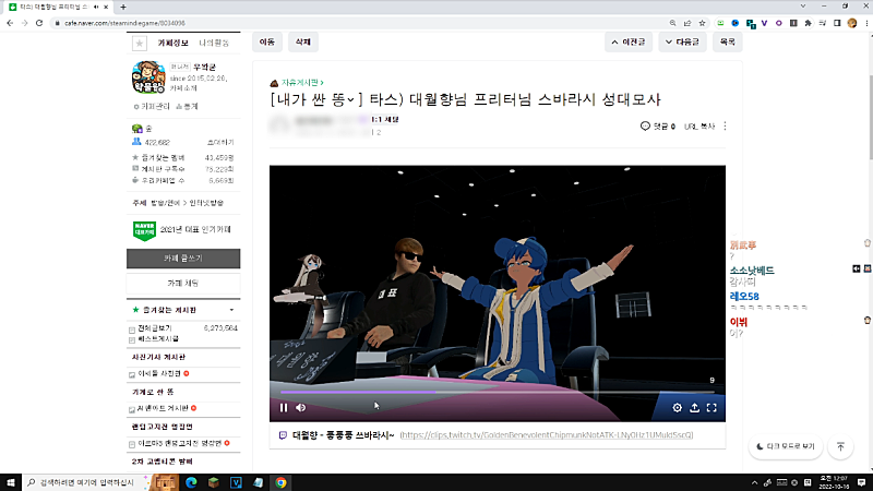 왁물원 즐겨찾기 게시판 루틴 돌기 (표지왕, 쇼츠왕)