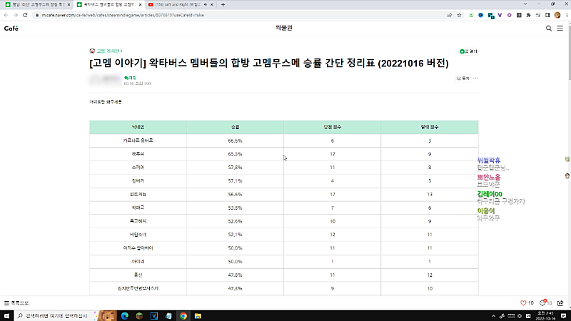왁컬 체계화 하신분 요즘 다시 물 올라오고 있긴 하네