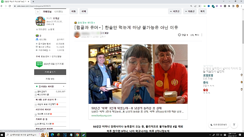못 먹은게 아니잖아 미국 사람들 얼마나 많이 먹는데