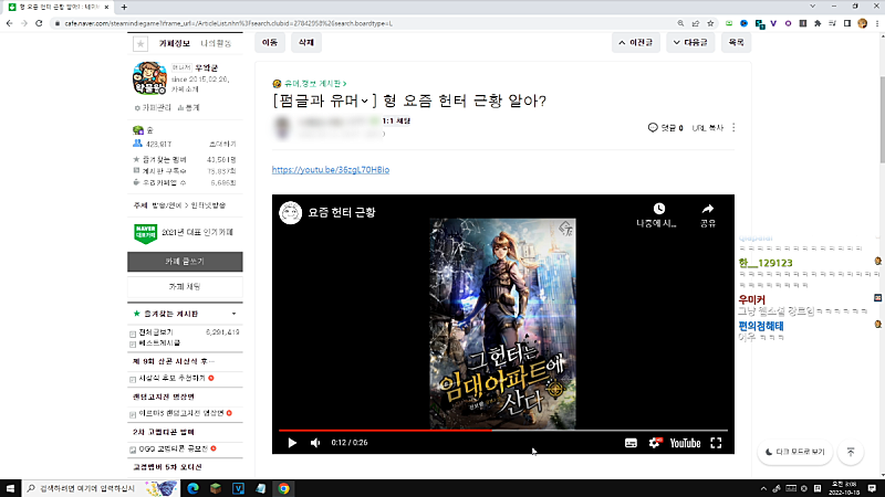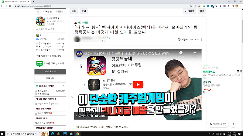 깨부해야지 그게 있어 요즘에는 유튜브가 진짜로