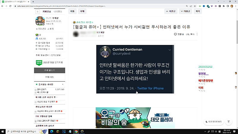 진짜 쿨찐들 레전드 .만 찍혀도 개난리칠거면서