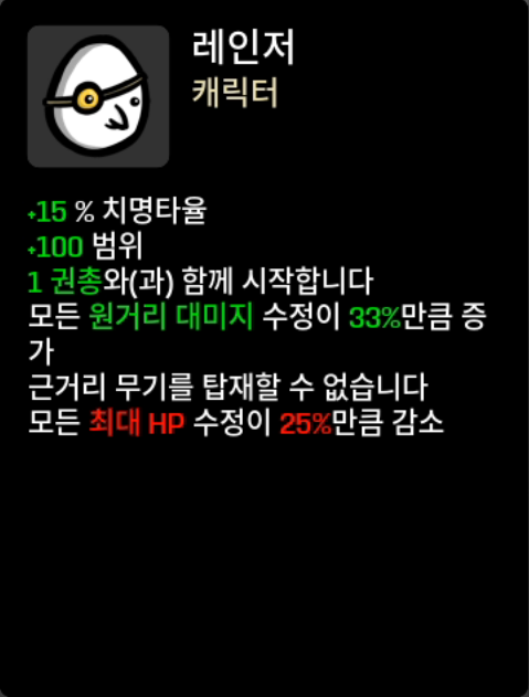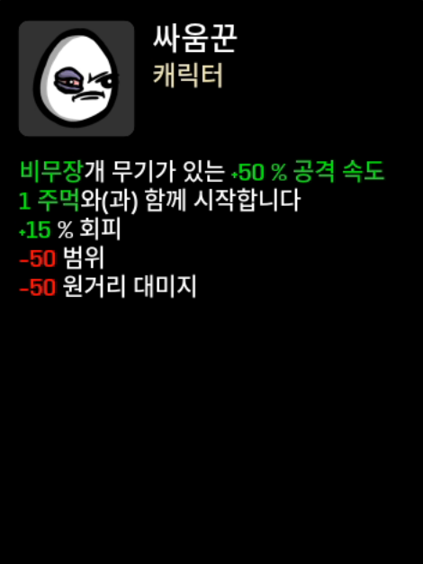 근접 회피 피흡 캐릭 (기본무기 : 손, 주먹)