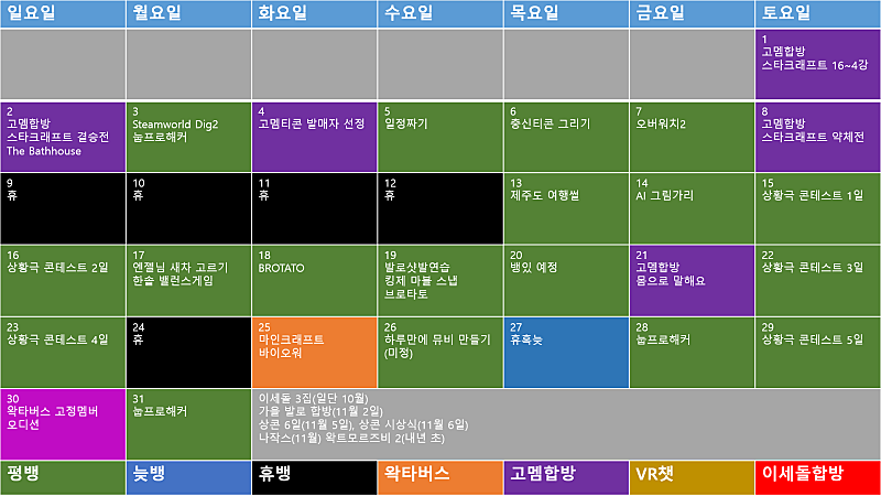 * 회색은 컨텐츠가 정해지지 않은 칸입니다