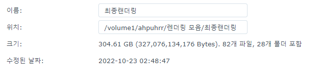 마지막으로 총 렌더링된 파일의 용량입니다