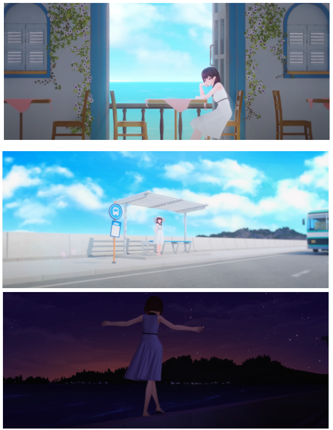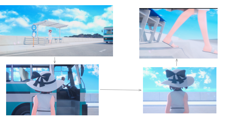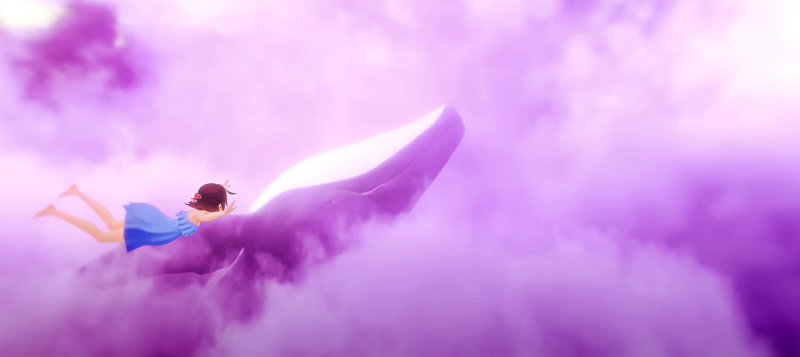 (참고로 고래를 하늘에 등장시킬지 바다에 등장시킬지 고민을 많이했는데 하늘과 바다속에서의 분위기가 차이났으면했고 그러려면 내면의 성장에 트리거가되는 고래를 하늘씬에 배치하는게 옳다고 생각했습니다)