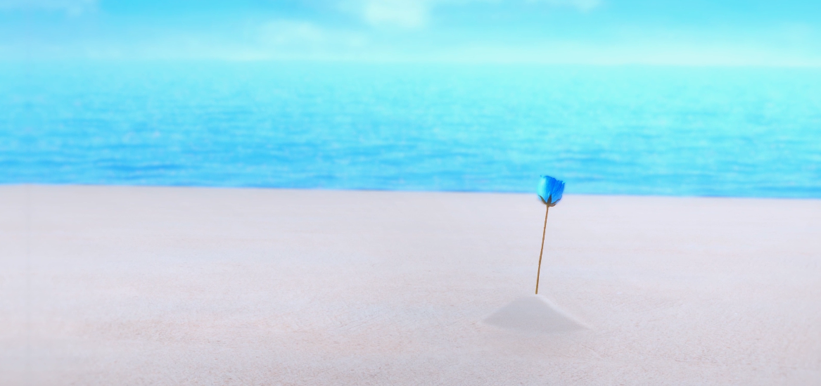 그렇게 주르르님은 파란장미를 들고 해변에 도착해 모래사장을 걷고있습니다