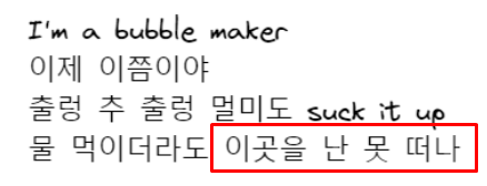 하이라이트 가사를 "보면 또 본다" "지겹게 보자고" 그리고 이전 가사에서 "이곳을 못 떠나"