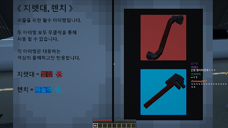 (쇠지랫대, 렌치는 1명에게만 주어짐)