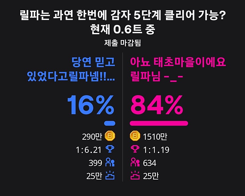 🦇:릴파님 79%의 박쥐들의 희망을 버리지 마세요! / 💙:아니다 이 매릴들아!