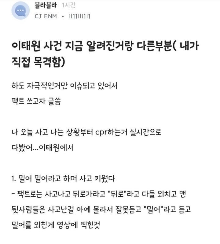 이태원 사건 너무 카더라만 믿지 마세요. 블라인드 올라온 현장 목격자의 진실....