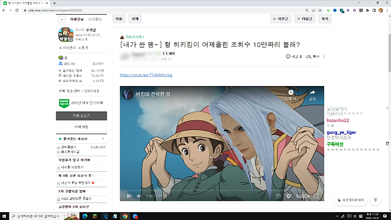 벌써 10만이야 하루 됐는데? ㅋㅋ핰핰핰 10 뭐야