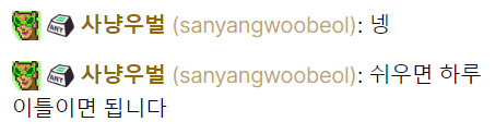 우벌님 한 1주일 드리면 돼죠? 테흫ㅋㅋㅋㅋㅋ