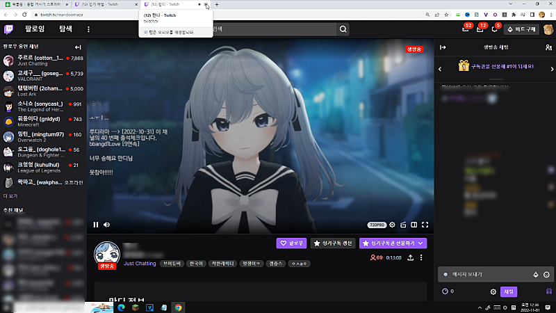 (트위치 채널 탐색) 되게 새로운분들 많이 생겼네?