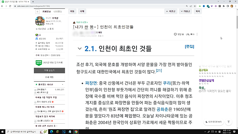 이야 인천뽕 지리네 별게 아니라 유명한거만 최초