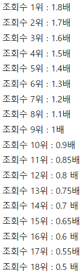 (중간 순위는 조회수별로 세세하게 나눔)