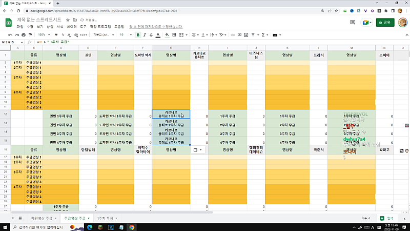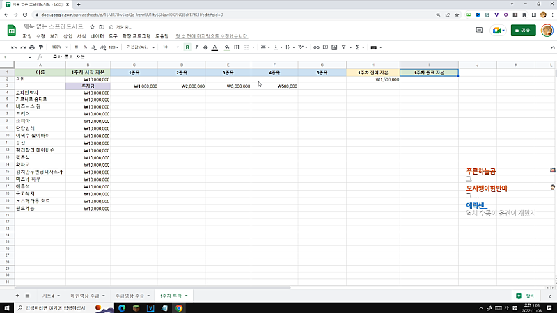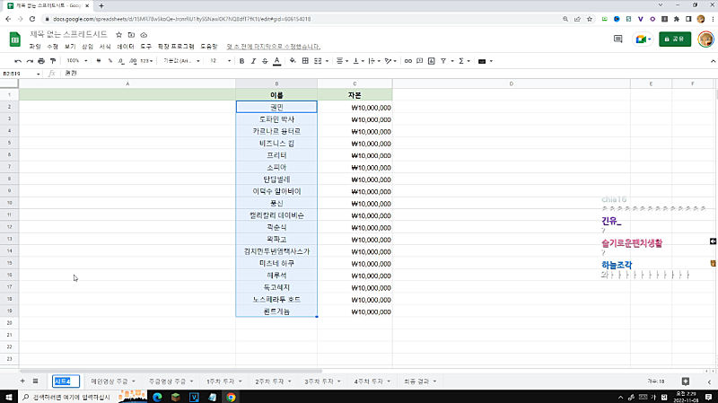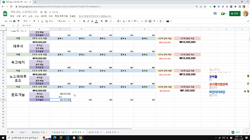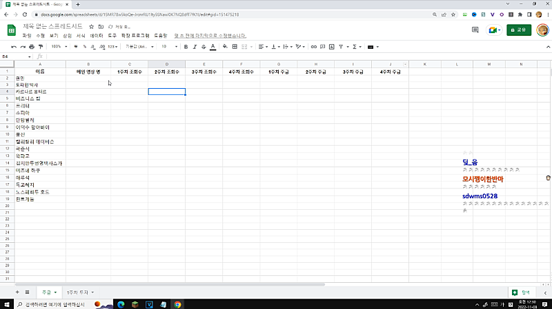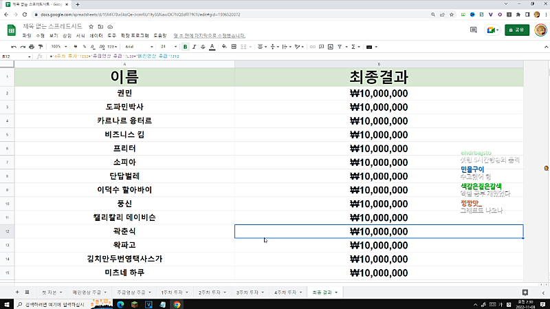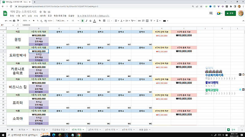 고정멤버 주식대회 시트 완성본 스샷
