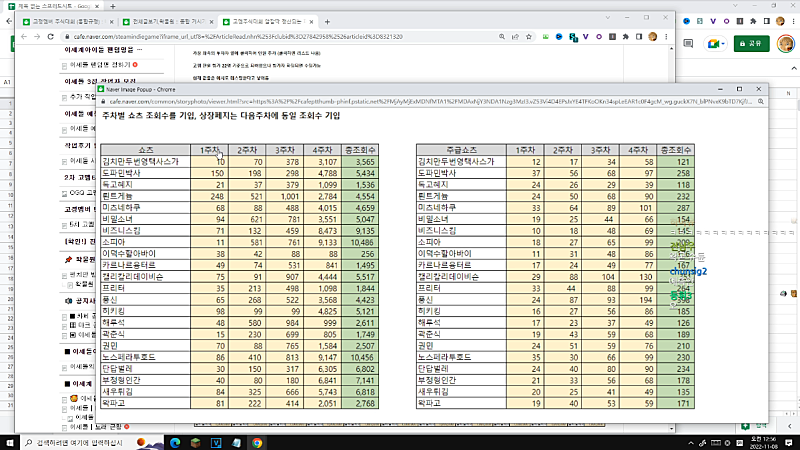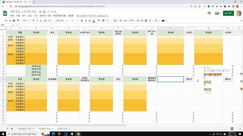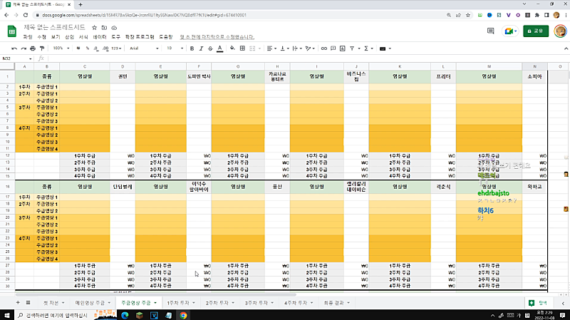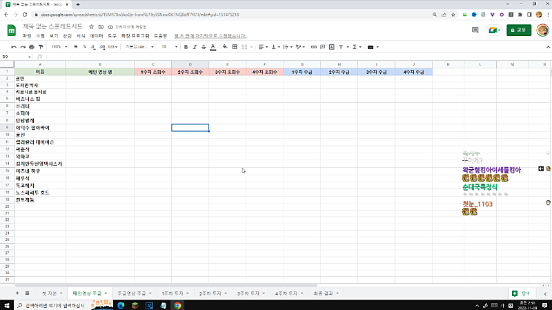 *도네로 왁사원 엑셀표 만드는거 재촉중