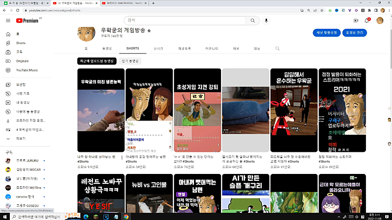 야 모든 1달동안 쇼츠 다 정체되가지고