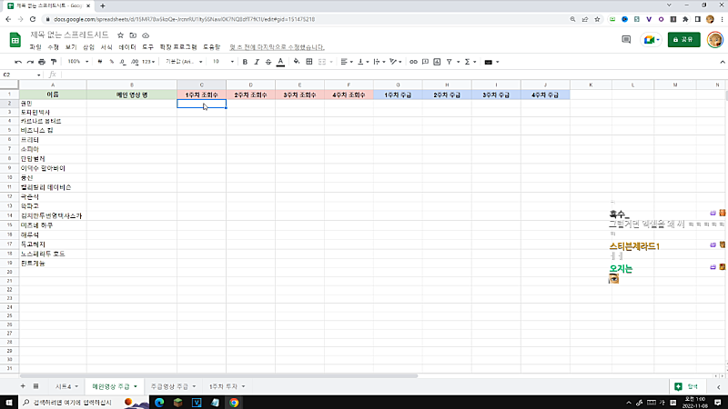 고정멤버 주식대회 엑셀 시트 만들기