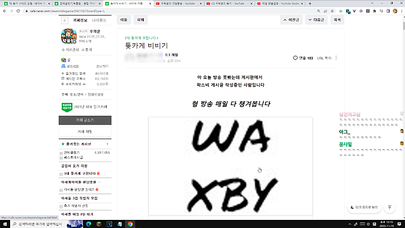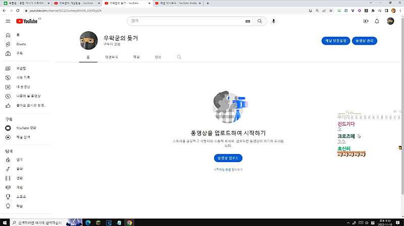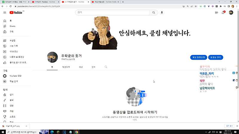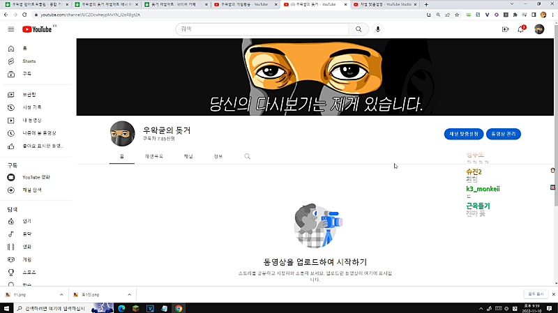 어어 들어왔네 이제 제 유튜브 업로드 가능하실건데