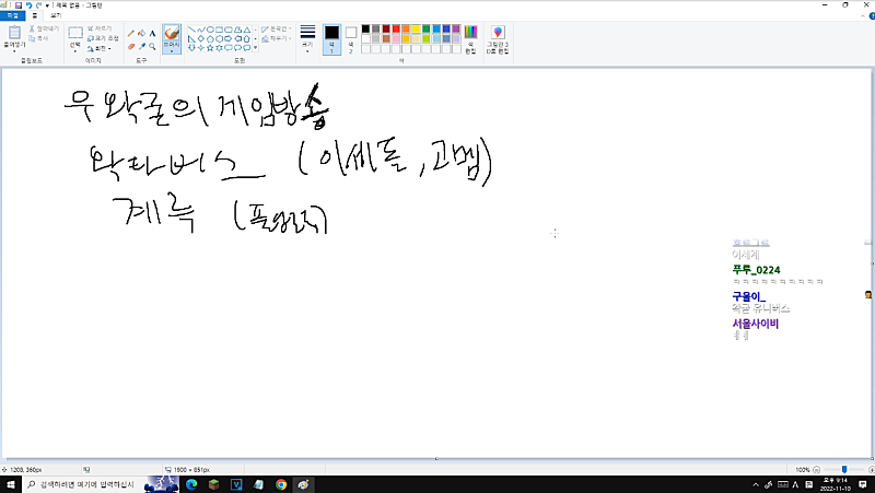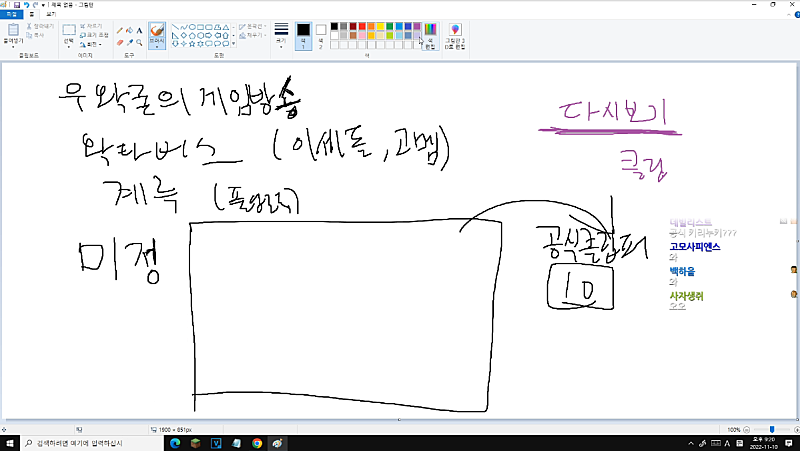 한줄씩 운영하는거야 방송에서 재밌는거 나오며는