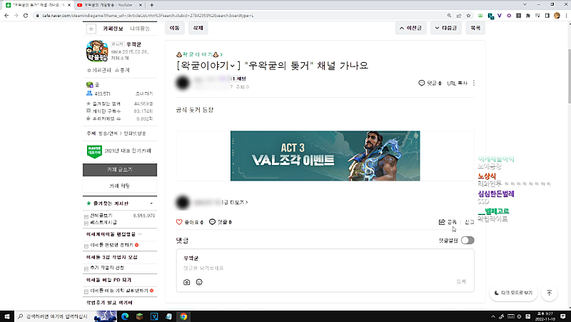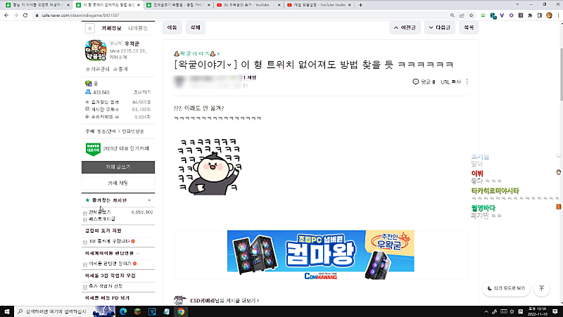 게임 ,컨텐츠, 노가리 영상 풀편집 돼서 올라가는곳