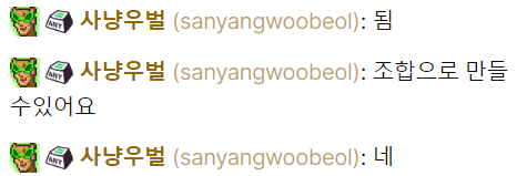 치즐 (블럭) 종류 하나씩 넣을거에요 이런식으로