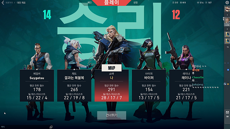팀운이 어 소바 개잘맞아 컷! 와 개잘했네?