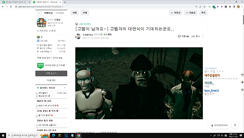 다 게임하는데 혼자 거기 있는거야