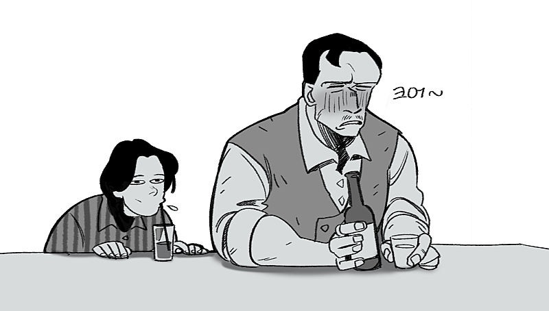 (전날 과음해서 3_3된 캘칼이랑 뢴)