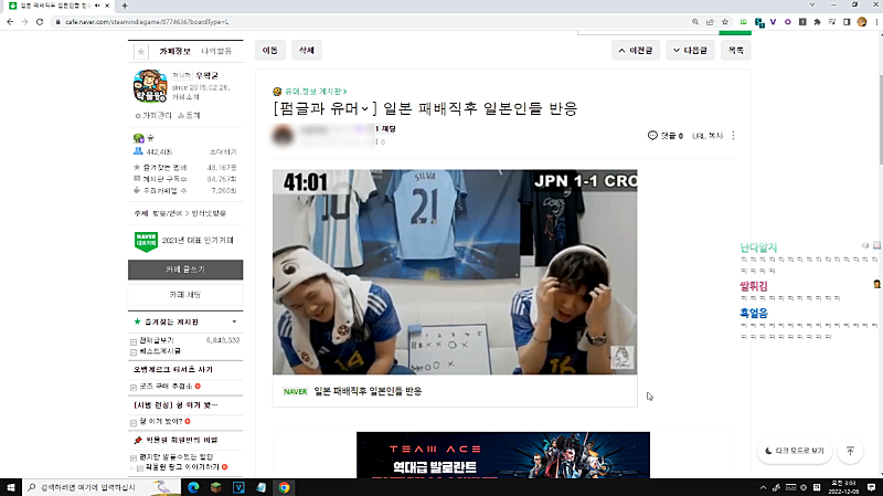 *일본 승부차기 패배 소식