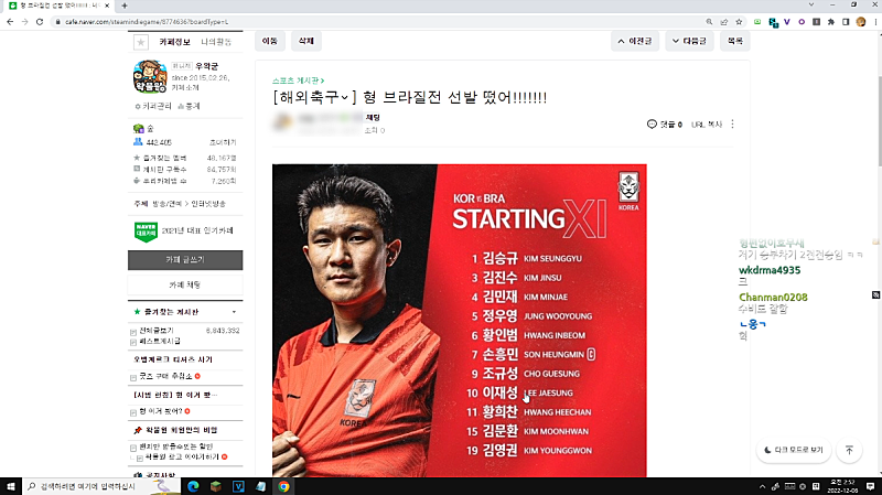 축구 집중해서 조용히 잔잔 응원방 가겠습니다