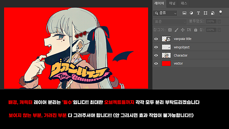 4) 레이어 분리는 VFX 작업을 위해서 필수 입니다!! (레이어 분리 관련 내용은 사진을 참고해주시면 감사하겠습니다)